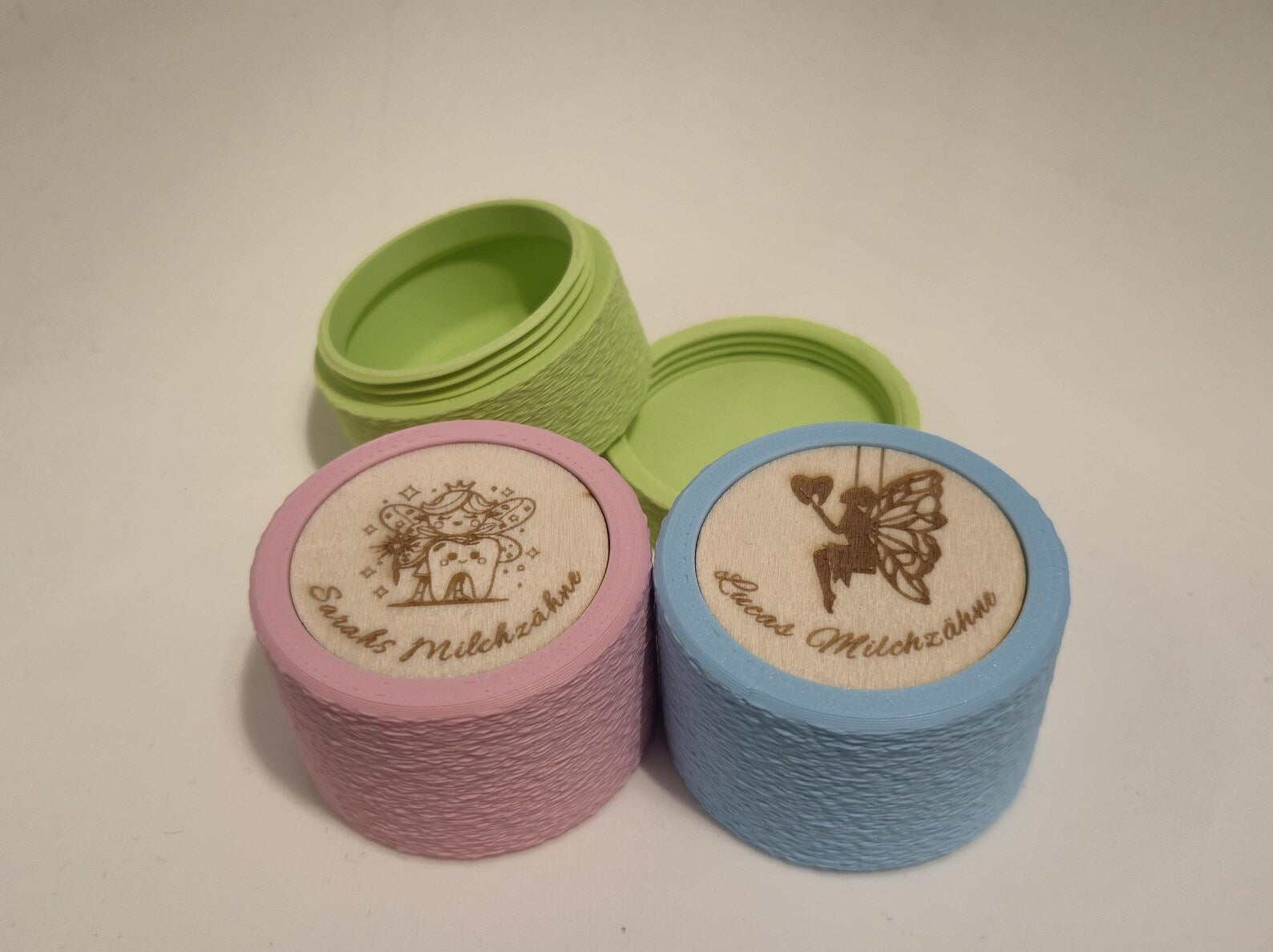 Der Schraubdeckel sorgt für sicheren Halt, die Farbe ist frei wählbar und der Deckel kann individuell personalisiert werden – perfekt als Geschenk zur Zahnfee-Zeit oder für besondere Andenken.