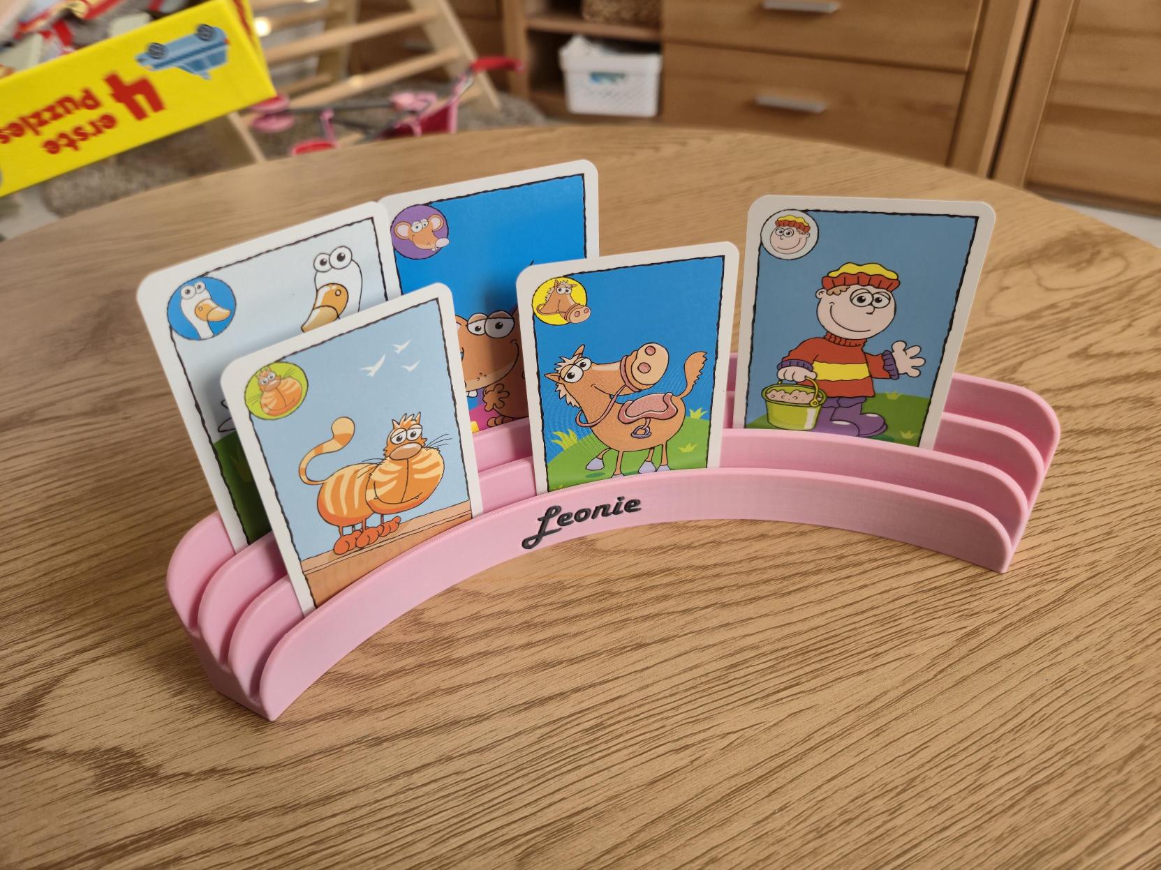Personalisierbarer Spielkartenhalter aus dem 3D-Druck – ideal für Kinderhände.