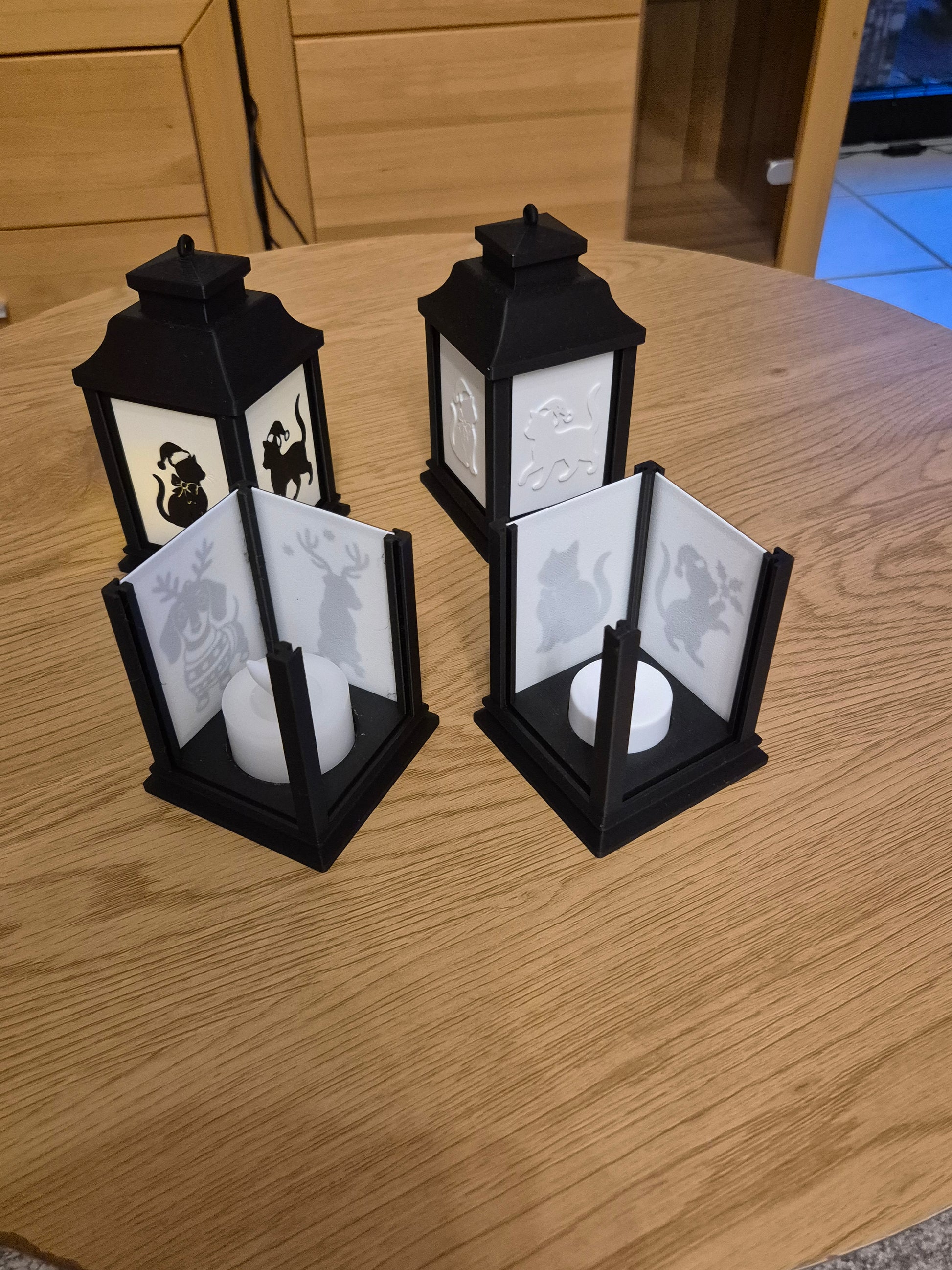 Weihnachts-Laterne für LED Teelichter mit süßem Katzenmotiv